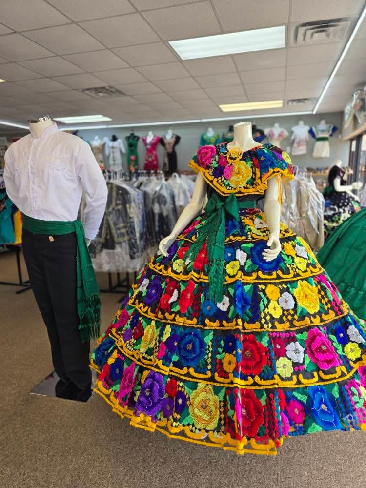 Encuentra trajes folklóricos elegantes y modernos, perfectos para bailes, quinceañeras y presentaciones culturales en Houston, Texas.